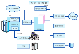 | ACD和G/IW MSC采用華為公司的C&C08_Q智能交換機做為交換與七號信令的接入設(shè)備; 短消息調(diào)度中心SMSC,處理短消息的提交、存儲、下發(fā)、定時重發(fā)等; 呼叫處理服務(wù)器CCS,是人工/自動秘書臺的話務(wù)呼叫控制部件; | ![]() |