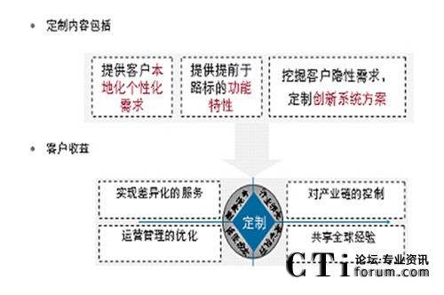 可定制服務(wù)主要體現(xiàn)在三個(gè)層面,一個(gè)是定制化服務(wù),通過全國10多個(gè)本地定制開發(fā)中心對(duì)客戶提供貼身二次開發(fā)服務(wù),支撐客戶更精細(xì)運(yùn)營其客服系統(tǒng),另一個(gè)是定制化路標(biāo),定制化創(chuàng)新系統(tǒng)方案,即通過華為MKT、行銷、開發(fā)部門對(duì)客戶價(jià)值需求的深度分析,將客戶需求去粗存精、去偽存真、由表及里、由此及彼“定制提煉”出來,成為我們產(chǎn)品和方案的路標(biāo)。