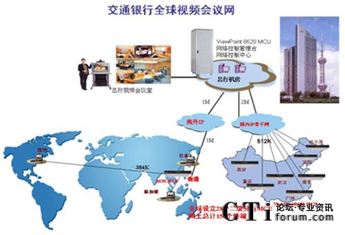 華為視訊構(gòu)建的視頻會議系統(tǒng)覆蓋交通銀行全國27個省級分行和全球6個分支機(jī)構(gòu),采用三級組網(wǎng)模式。系統(tǒng)主會場在上海交通銀行總部。系統(tǒng)采用IP組網(wǎng),總行采用一套ViewPoint8620視訊交換平臺作為頂級平臺、各省分行及海外分行采用28套ViewPoint8630 IP視訊平臺作為二級平臺,各地市分行按當(dāng)?shù)氐臉I(yè)務(wù)需求或采用會議電視終端掛在省分行的二級MCU下,或放置一套ViewPoint8630 MCU組建本地市分行的三級視頻會議網(wǎng)絡(luò),并有效接入總行的MCU平臺。網(wǎng)上目前總計有150套終端,實現(xiàn)了交通銀行總部和全球所有分支機(jī)構(gòu)之間的遠(yuǎn)程會議、視頻溝通、遠(yuǎn)程培訓(xùn)等功能。在節(jié)約寶貴時間、精力和金錢的同時,提高了銀行管理和決策的效率。