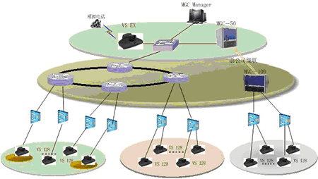 一般來說,在省公司同時參與會議的人數(shù)較多,考慮配置比較大的系統(tǒng),由某一領導召集一些相關成員在此開會;在地市公司同時參與會議的人數(shù)較少,只是一些主要領導參加會議,考慮配置比較小的系統(tǒng);同時,為了實現(xiàn)終端之間管理和傳送音頻、視頻和數(shù)據(jù),需要MCU來協(xié)調(diào)終端的工作,并與上級MCU相級聯(lián),擴大會議的規(guī)模。另外,可以增加一套T.120服務器,該系統(tǒng)是利用多媒體技術幫助使用者對工作中的各種信息進行處理,如共享數(shù)據(jù)、共享應用程序、實現(xiàn)文件的雙向傳輸?shù),從而構造出一個多人共享的工作空間。以及增加一套VOD系統(tǒng),它集視頻采集、點播、廣播于一體,這樣就可以將視頻會議的內(nèi)容實時的錄制到本地,也可將一些培訓資料放在視頻點播里,便于對貴公司員工進行培訓,還能通過視頻廣播的功能,讓使用PC機的人員不在會議室,便可以通過瀏覽器實時的看到和聽到正在召開的會議。