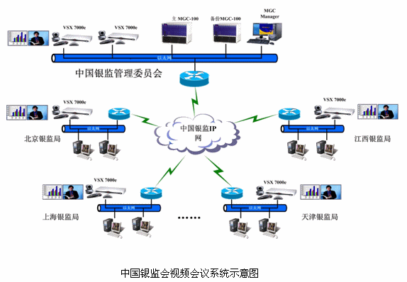 中國銀監(jiān)會屬國家重要的行政機關(guān)單位,它的總部設(shè)在北京,在全國三十六個城市設(shè)有三十六個分支機構(gòu)。中國銀監(jiān)會各分支結(jié)構(gòu)遍布全國,在沒有建立視頻會議系統(tǒng)以前,主要采用出差開會或電話聯(lián)系等溝通方式交流,這些方式都使交流受到多方面的制約,也無法作到及時地面對面交流,基于此,中國銀監(jiān)會決定采用遠程視頻會議系統(tǒng),來解決傳統(tǒng)溝通方式花費太高、效率難盡人意等問題。