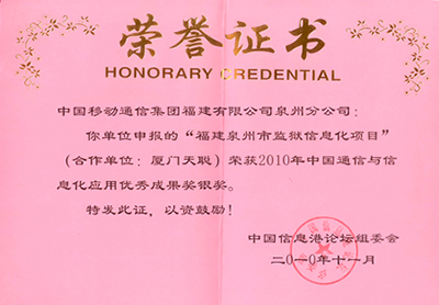 在本屆論壇上,由廈門天聰智能軟件有限公司與泉州移動聯(lián)合研發(fā)成功的全國首創(chuàng)的聲紋識別親情電話系統(tǒng)(福建泉州市監(jiān)獄信息化項目)獲得“2010年中國通信與信息化應(yīng)用優(yōu)秀成果獎”銀獎。這一系統(tǒng)的研制成功,對司法系統(tǒng)的信息化建設(shè)與管理具有重大意義。