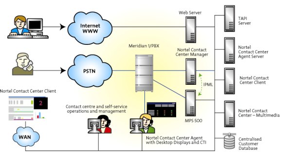 互聯(lián)網(wǎng)網(wǎng)址、PSTN、北電聯(lián)絡(luò)中心客戶(hù)端、WAN、Meridian1/PBX、聯(lián)絡(luò)中心和自助服務(wù)操作及管理、Web服務(wù)器、北電聯(lián)絡(luò)中心管理器、IPML、MPS500、帶桌面顯示器和CTI的北電聯(lián)絡(luò)中心座席、TAPI服務(wù)器、北電聯(lián)絡(luò)中心代理服務(wù)器、北電聯(lián)絡(luò)中心客戶(hù)端、北電聯(lián)絡(luò)中心—多媒體、中央客戶(hù)數(shù)據(jù)庫(kù)。