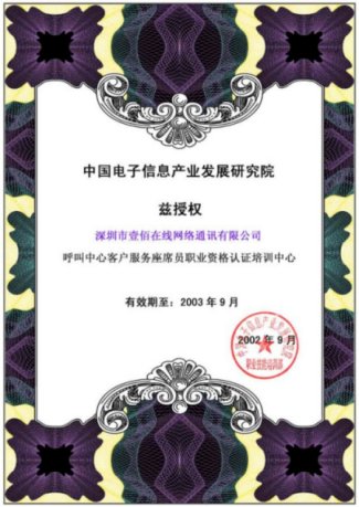 近日,中國(guó)電子信息產(chǎn)業(yè)發(fā)展研究院正式授權(quán)深圳壹佰在線網(wǎng)絡(luò)通訊有限公司為"呼叫中心客戶服務(wù)座席員職業(yè)資格認(rèn)證培訓(xùn)單位"。