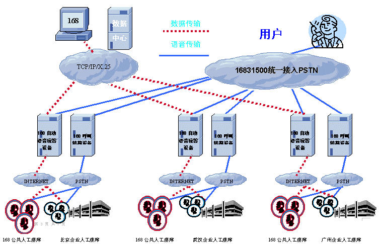 近期,從中國電信數(shù)據(jù)業(yè)務(wù)主管部門得知,中國電信168系統(tǒng)通過一期的聯(lián)網(wǎng)改造,已經(jīng)可以在全國一百多個城市提供同步的自動語音服務(wù),其中十幾個省份開通本地人工座席的接入服務(wù)以及公共的人工座席出租服務(wù)。企業(yè)可以租用該平臺的特服接入號碼,將全國各地的服務(wù)分支機構(gòu)組建成大型的呼叫中心,為各地的用戶提供高效的自動和人工服務(wù)。在所有開通城市消費者均可以得到以市話標(biāo)準(zhǔn)的統(tǒng)一自動語音服務(wù)支持,同時,消費者在自動語音的提示下可以與當(dāng)?shù)鼗虍惖氐娜斯ぷ〉寐?lián)系。企業(yè)端的接入設(shè)備可以是標(biāo)準(zhǔn)的呼叫中心人工座席,也可以是集團電話或公司總機,甚至于可以是一部普通電話,而且企業(yè)整個服務(wù)過程中不用承擔(dān)被叫通信費用。
