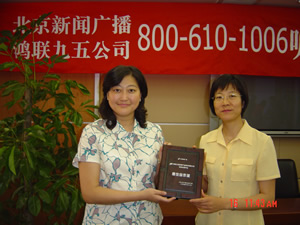 鑒于鴻聯(lián)九五信息處理中信與北京廣播電臺新聞臺的合作中所提供的高水平的服務,近期,新聞臺李臺長在聽眾見面會上親自將最佳合作獎交到鴻聯(lián)九五總經(jīng)理趙薇的手中,并熱切希望開拓今后合作,努力走出一條呼叫中心和媒體合作的新路。