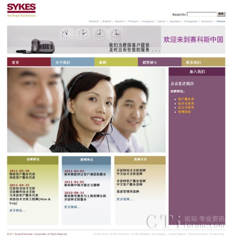 CTI論壇(ctiforum)8月8日消息(記者 潘婷婷): 為了更全方位地展現(xiàn)賽科斯中國的公司風(fēng)貌,公司網(wǎng)站(www.sykes.com.cn)經(jīng)改版后于8月4日全新登場。新網(wǎng)站在風(fēng)格、結(jié)構(gòu)、內(nèi)容等方面作了整體改進(jìn),使得整個(gè)網(wǎng)站的表現(xiàn)更清晰,界面更友好。