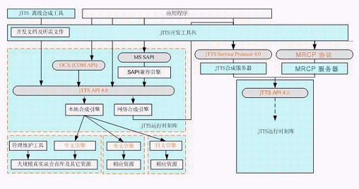Programming Interface),即jTTS API 4.0,以及統(tǒng)一的多語種引擎管理模塊,即jTTS_ML.DLL。多語種的引擎(例如中文引擎jTTS_CH.DLL,英文引擎jTTS_EN.DLL等)在多語種引擎管理模塊的調(diào)度下進(jìn)行實際的合成工作,而目前尚未提供的其他語種的引擎也可以方便地加入到這個體系結(jié)構(gòu)中來。