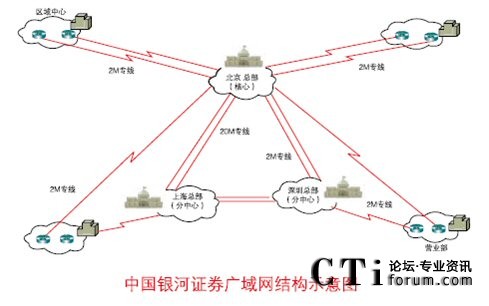 銀河證券采用二級網絡結構,其中一級采用三中心的冗余結構;二級為各營業(yè)部。營業(yè)部線路上采用雙專線的冗余線路方式,其中兩條線路分別屬于兩家不同的電信運營商。營業(yè)設備上采用雙設備,保證了營業(yè)部在設備上的冗余,避免硬件設備單點故障,同時實現(xiàn)了業(yè)務網與辦公網的物理分離。