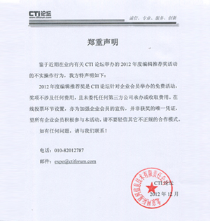 3. 充分利用CTI論壇及合作媒體的優(yōu)勢(shì),廣泛聽(tīng)取來(lái)自業(yè)內(nèi)人士和廣大用戶的意見(jiàn)和建議。