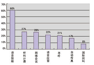 現(xiàn)在常用的辦公交流方式還是以傳統(tǒng)的電話、互聯(lián)網(wǎng)、電子郵件為主,而Voice Mail的方式卻比較少。可以看出,在Voice Mail上還有很大的發(fā)展空間。