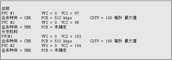 如果3個(gè)PVCs都是恒定比特率類型的業(yè)務(wù),則PCR的總和不能超過1.024Mbps。如果3個(gè)PVCs都是可變比特率的應(yīng)用,SCR的總和不能超過1.024Mbps,PCR的總和不能超過1.35Mbps。如果端用戶要求更大的帶寬,則需要DS3接口,部分DS3接口,ATM反復(fù)用器(IMA)或OC3物理接口。
