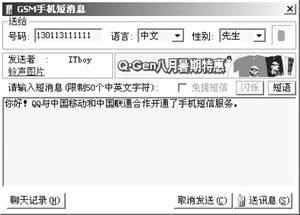 目前IM與各種移動終端設(shè)備的結(jié)合也越來越多。使用QQ向手機(jī)發(fā)送短信需要手機(jī)開通移動QQ服務(wù),單擊對方頭像圖標(biāo),在打開的快捷菜單中選擇“手機(jī)短訊”命令,在打開的對話框中輸入信息,然后點擊發(fā)送即可完成,這時對方的手機(jī)就可以收到一個消息。給BP機(jī)發(fā)短訊也是一樣,不過對方的BP機(jī)服務(wù)臺必須是QQ所支持的情況下才行。當(dāng)對方的手機(jī)收到你發(fā)來的短信后還可以回復(fù),這時候您的QQ會彈出“查看手機(jī)短訊”的窗口來,非常方便。