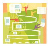 俗話說,多多益善。但是當(dāng)談到多個網(wǎng)絡(luò)的管理或費(fèi)用承擔(dān)等問題時(shí),恐怕大多數(shù)人都會同意一個網(wǎng)絡(luò)要比兩個或者三個更為經(jīng)濟(jì)有效。這其實(shí)是很容易理解的----當(dāng)數(shù)據(jù),語音和視頻能夠利用同一個網(wǎng)絡(luò)進(jìn)行傳輸?shù)脑,還有什么必要在每個桌子拖上一大堆電線,讓公司維護(hù)三五套網(wǎng)絡(luò)硬件,還要養(yǎng)活好幾組技術(shù)支持隊(duì)伍呢?更何況一個綜合性的網(wǎng)絡(luò)還能集中精力為每個用戶提供更好的服務(wù)?于是,IP電話應(yīng)運(yùn)而生,這種技術(shù)讓很多公司有機(jī)會利用現(xiàn)有的網(wǎng)絡(luò)框架贏得更大的利益。