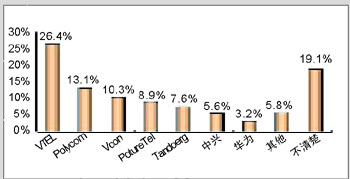 各品牌的認(rèn)知度與其市場銷售情況息息相關(guān)。例如,VTEL是最早進(jìn)入中國市場的視頻會(huì)議廠商,并在相當(dāng)長的時(shí)期內(nèi)占據(jù)市場領(lǐng)先地位,取得顯著的品牌認(rèn)知度是有其廣泛用戶基礎(chǔ)作為支撐的;Polycom雖然從1998年才開始進(jìn)軍中國市場,但在基于IP的視頻會(huì)議系統(tǒng)的市場爭奪中取得較好的成績;PictureTel已經(jīng)被Polycom收購,品牌認(rèn)知度也相對較低;而國內(nèi)品牌中興、華為剛剛起步,也很難達(dá)到較高的認(rèn)知度。