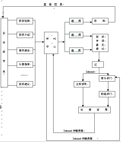 4、投訴、建議的處理信息,通過(guò)呼叫中心反饋給領(lǐng)導(dǎo)部門(mén)和投訴者。