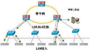 提供骨干業(yè)務路由交換服務,一般由大容量的GSR或三層交換機組成。此層面設備規(guī)模有限且類型相對單一,對設備的管理已有較為完善的解決方案。