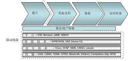 Supplementary Service Data)等。下圖可以更好的解釋移動支付的建立過程以及涉及到的移動架構。
