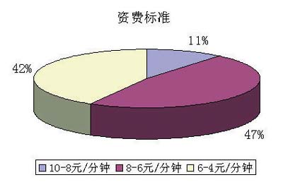 在調查中,67.4%的用戶對現(xiàn)有中國電信的資費標準(10元/分鐘)表示不滿,32.6%的用戶表示滿意。但同時58%的用戶對能接受的資費標準上又選擇了居中和較高的資費標準,表明用戶對視訊應用產(chǎn)品的價格承受能力較高。