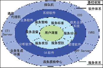 軟件體系層:主要是各種應(yīng)用軟件,提供客戶服務(wù)中心的業(yè)務(wù)開(kāi)展、信息交流、分析決策等功能 。