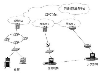 網(wǎng)通視訊業(yè)務(wù)作為應(yīng)用層的服務(wù),可以通過(guò)客戶的分支機(jī)構(gòu)之間由MPLS VPN組成的專網(wǎng)來(lái)承載視頻通信,或者通過(guò)接入網(wǎng)通的視頻VPN來(lái)使用視頻通信服務(wù)。
