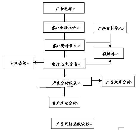 廣告熱線是在呼叫中心系統(tǒng)中設(shè)立專欄,為廣告中的產(chǎn)品或服務(wù)提供更詳細的資料。首先應(yīng)將需要在廣告中出現(xiàn)的詳細內(nèi)容或不適合在廣告中出現(xiàn)的內(nèi)容按照要求導入呼叫中心系統(tǒng),準備就緒后,就在媒體或其他介質(zhì)上做廣告,其中廣告的內(nèi)容中含廣告熱線號碼。電話號碼建議采用800電話,以提高客戶撥打電話的積極性。呼叫中心會記錄打進的每一個電話,并且提供完成的系統(tǒng)報表。這樣可以彌補廣告中提供給消費者內(nèi)容不足的缺陷,另一方面可以根據(jù)電話量判斷廣告的效果。