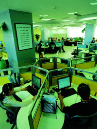 這個輕松的環(huán)境不是會客室,而是松下電器(中國)有限公司提供客戶服務的800呼叫中心。