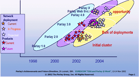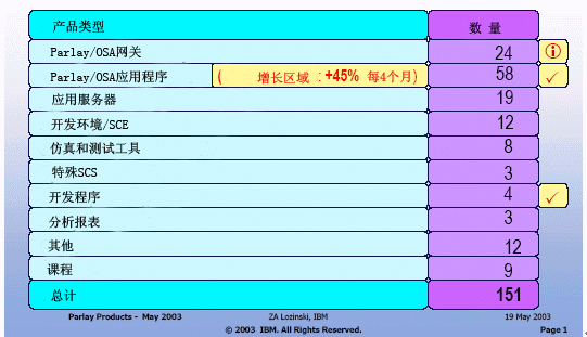 2003年5月底,世界上已經(jīng)有45個業(yè)務提供商正在使用Parlay 3.0或正準備采用Parlay技術(shù)。