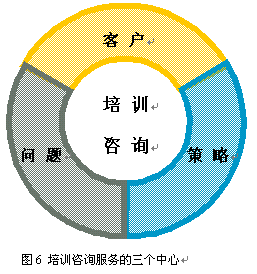 當然,提升效果對于培訓咨詢服務(wù)提供商來說是一個很高的要求,不但要有專業(yè)運營經(jīng)驗和精深的行業(yè)知識,還需要從"以問題為中心"的思路過渡到關(guān)注"問題、客戶、策略"三個中心(如圖6 所示)。
