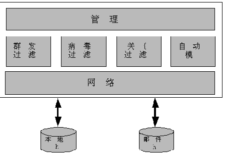 由華南理工大學(xué)自主研究開發(fā)的MATRIX郵件處理系統(tǒng),是專門針對垃圾郵件和病毒郵件的產(chǎn)品。它采用模塊化結(jié)構(gòu)和標(biāo)準的軟硬件工業(yè)結(jié)構(gòu)設(shè)計,具有擴充方便,可以迅速升級的特點,同時該系統(tǒng)采用最新的垃圾過濾網(wǎng)關(guān)攔截技術(shù),具有很強的適用性,適用于各種郵件服務(wù)器系統(tǒng)如Sendmail、MS Exchange等。系統(tǒng)功能包括: