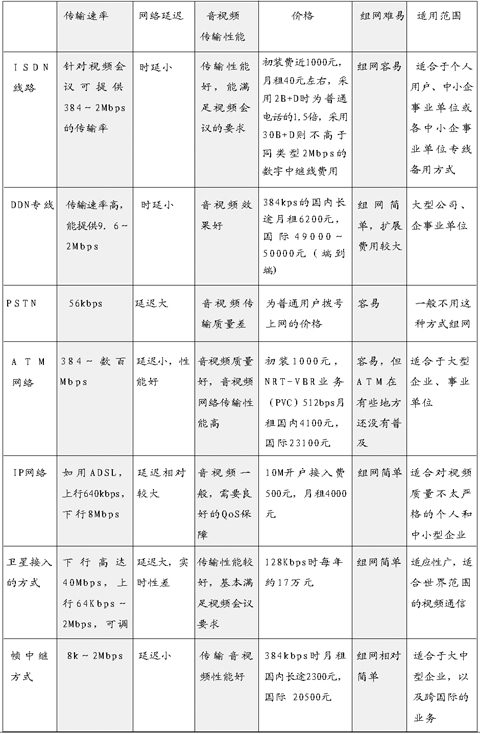 對于普通的個人用戶,如果想嘗試一下視頻會議的感受可以試一試PSTN接入。PSTN公共電話網是目前使用最廣泛的網絡系統,它的優(yōu)點是覆蓋區(qū)域廣、易于使用、價格較低,聯網容易。但網絡速度僅能提供到56kbps,線路質量較差,傳輸速率較低。對于視頻會議的聲音圖像傳輸遠遠不夠,基于軟件的視頻會議系統能達到4f/s的圖像傳輸速率,其最大的缺點是圖像質量太差,會大大影響會議的質量,一般用得很少。