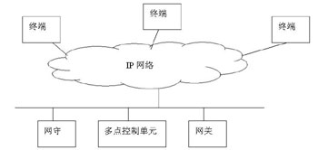 基于H.323的軟件視頻會議系統(tǒng)由相應(yīng)的協(xié)議族提供支持,使得這樣的系統(tǒng)能夠有很強(qiáng)的適應(yīng)性、兼容性。H.323建議的多媒體會議系統(tǒng)不是基于客戶服務(wù)器結(jié)構(gòu),而是基于傳統(tǒng)的電話呼叫網(wǎng)絡(luò)模式。H.323為基于網(wǎng)絡(luò)的通信協(xié)議定義了4個(gè)主要的組件:終端(Terminal)、網(wǎng)關(guān)(Gateway)、網(wǎng)守(Gatekeeper)和多點(diǎn)控制單元(MCU);就?fù)浣Y(jié)構(gòu)結(jié)構(gòu)如圖: