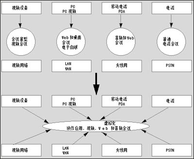 典型的大企業(yè),其電話會議,視頻會議以及網(wǎng)絡與數(shù)據(jù)會議通常是相互獨立的系統(tǒng)。UCC可以實現(xiàn)各種通信平臺的協(xié)同工作,員工只需使用一個通用界面便可調(diào)用多種終端設備。它將視頻會議、音頻會議、短消息以及網(wǎng)絡接入結(jié)合在一起。還能結(jié)合IP電話功能,如狀態(tài)信息功能等。本專題專門介紹了業(yè)界較為成功的幾種融合視頻概念和產(chǎn)品。