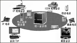 實現(xiàn)調(diào)度、呼叫處理、網(wǎng)絡會議的軟件(通過門戶網(wǎng)站,Microsoft Outlook,Web瀏覽器等);管理和目錄服務軟件;軟件或硬件終端;多標準支持,如:H.323、H.320、SIP、ISDN、IP;媒體處理硬件(會議橋和網(wǎng)關)。