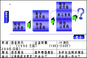 目前多數(shù)集成商都是采用國際通信界最為先進(jìn)的ITU-T(國際電信聯(lián)盟電信標(biāo)準(zhǔn)化部門)H.323(基于數(shù)據(jù)包的多媒體通信系統(tǒng))、SIP(初始會話協(xié)議)、Soft Switch(軟交換)、3G、IPv6等技術(shù)進(jìn)行系統(tǒng)構(gòu)筑,全面融合先進(jìn)的語音、數(shù)據(jù)及移動通信IP一體化解決方案,從而為企業(yè)提供不同需求層次的選擇。另外,由此導(dǎo)致產(chǎn)業(yè)結(jié)構(gòu)也悄悄地發(fā)生變化,產(chǎn)業(yè)朝三層級和多層級演變通信的新結(jié)構(gòu)和新角色:服務(wù)運(yùn)營商的誕生,網(wǎng)絡(luò)運(yùn)營商向服務(wù)提供商的轉(zhuǎn)型。 新運(yùn)營商是通信產(chǎn)業(yè)的新角色,新運(yùn)營商象征著 IP 通信時代的到來,新運(yùn)營商成為驅(qū)動產(chǎn)業(yè)發(fā)展的重要角色。