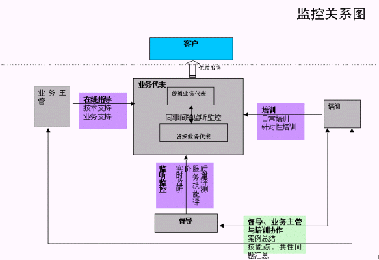 呼叫中心的質(zhì)量管理涉及到如下幾個方面,一、座席人員的話務(wù)質(zhì)量;二、各項(xiàng)質(zhì)量運(yùn)營指標(biāo)的實(shí)現(xiàn)情況;三、客戶的滿意度指標(biāo)。在本部分內(nèi)容中,重點(diǎn)討論話務(wù)人員的話務(wù)質(zhì)量控制。