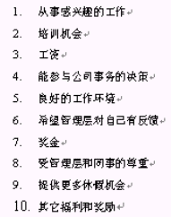 在對(duì)員工關(guān)心的十個(gè)指標(biāo)的調(diào)研、統(tǒng)計(jì)分析后發(fā)現(xiàn),在企業(yè)提供良好的培訓(xùn)體系前提下,人員的流失與企業(yè)提供的薪酬有必然的關(guān)系。各因素影響程度由高到低排序如下: