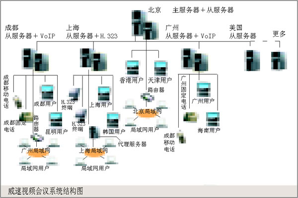 。。6.與H.323設備的兼容與連通。在V2 Conference視頻會議中,會議用戶可以與各種H.323終端設備進行音視頻的交互,既可呼叫其他的H.323設備,其他的H.323設備也可以呼叫會議用戶。這種互通方式分為橋接和直連兩種模式。在橋接方案中,使用一臺威速的客戶端作為Proxy,這臺客戶端可以呼叫H.323設備。而在直連模式中,H.323設備(終端及MCU)能夠直接連接到V2的服務器上,而不需要通過proxy進行轉發(fā)。