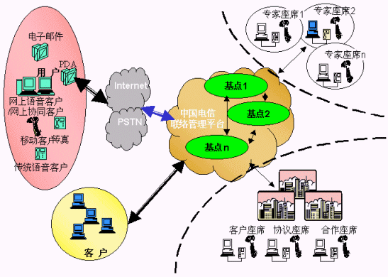 電信運營商提供的用戶、客戶、電信公司的統(tǒng)一的聯(lián)系平臺,各類客戶通過使用聯(lián)系平臺,向其用戶提供方便的、不受時間、地域和媒體的限制的"3A"級聯(lián)絡服務,用戶、客戶、電信平臺間的聯(lián)絡能得到有效路由、管理、品質(zhì)保障;聯(lián)絡中心通過將分布在各地、各種媒體、各種形式的資源整合在一起實現(xiàn)客戶服務增值,創(chuàng)造無限商機,有效提升客戶聯(lián)絡中心的價值,使用戶得到最貼身的、個性化的、專業(yè)的服務,為客戶提供成本更低、資源更豐富、服務更專業(yè)、具備強大商業(yè)智能的產(chǎn)品營銷及服務、電信運營商則開發(fā)大量的增值服務、產(chǎn)生更多的利潤增長空間、更多忠實的客戶,實現(xiàn)三方面共同成功。