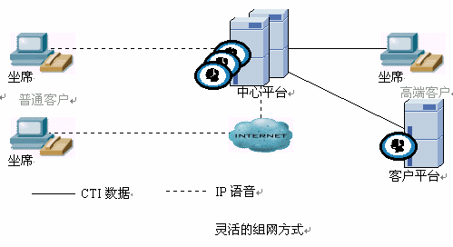 中心系統(tǒng)具備網(wǎng)絡呼叫中心及靈活的設備組網(wǎng)方式,必須使用多種媒體結(jié)合技術,平臺能智能處理來自不同媒體的服務請求。多媒體包含了固定電話、移動電話、傳真、尋呼、短消息、Web、Email、視頻、PDA等多媒體。