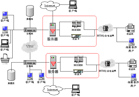 上圖中紅色框架為gotoneFax系統(tǒng)。它可以很方便的融入目前企業(yè)的網(wǎng)絡(luò)中,擴張您目前網(wǎng)絡(luò)的功能,為您提供及時的服務(wù)。當然這也是我們的愿望。