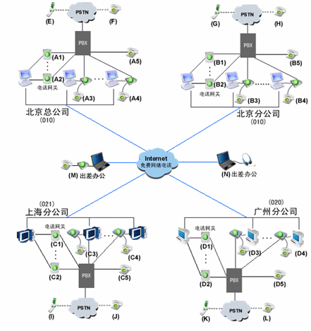 由玻瑞器客戶端和電話網關組成企業(yè)軟交換系統(tǒng)