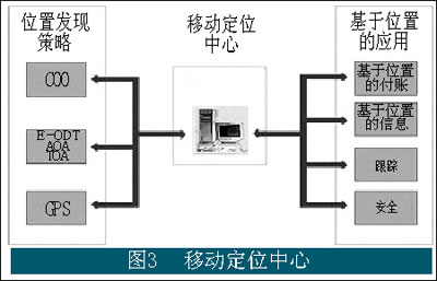 盡管基于位置信息的業(yè)務(wù)和應(yīng)用有著巨大的市場(chǎng)潛力,但是一些移動(dòng)網(wǎng)絡(luò)運(yùn)營(yíng)商在面對(duì)如此多的技術(shù)時(shí),偶爾會(huì)感到困惑。為了迅速地開展業(yè)務(wù)而不用過(guò)多地糾纏在技術(shù)層面上,圖3所示的方案得到了推介。在該方案中,移動(dòng)位置定位中心將定位技術(shù)的選擇和業(yè)務(wù)應(yīng)用的選擇有效地隔離起來(lái)。由于COO的精確度已經(jīng)可以為許多應(yīng)用提供位置信息的支持,這樣移動(dòng)網(wǎng)絡(luò)運(yùn)營(yíng)商可以先采用綜合代價(jià)最小的技術(shù)去拓展業(yè)務(wù),而在以后逐漸地采用一些先進(jìn)的定位技術(shù)。