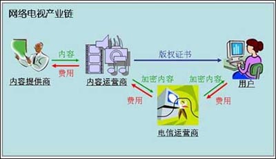 內(nèi)容保護(hù)技術(shù)適用于所有數(shù)字化的資產(chǎn),只不過對于支持IPTV的ICP們顯得更為迫切,因?yàn)榫W(wǎng)絡(luò)的傳播更為快捷。