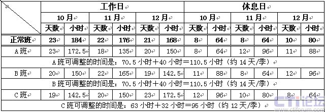 1)正常日班人員:主要的工作時間是8:00~16:00,該班組人員是固定在這一時間段內工作,不另作安排。
