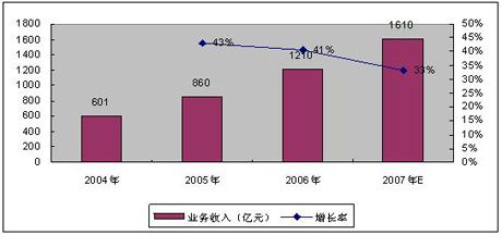 賽迪顧問預測2007年底,我國增值電信業(yè)務市場收入有望超過1600億元,增速高達33%,移動增值業(yè)務收入規(guī)模將達980億元左右,占比高達61.25%。2007年增值電信業(yè)務經營企業(yè)的數量將會出現負增長,量的下降帶來質的提升,表明增值電信業(yè)市場已經趨于良性發(fā)展。