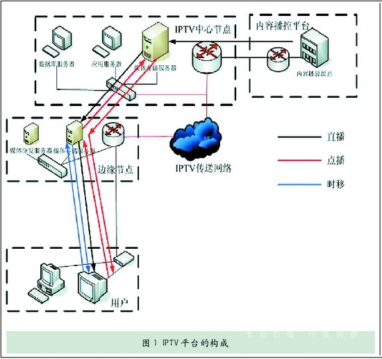 圖1中采用的是兩級架構(gòu),實際部署中,IPTV平臺可以采用多級架構(gòu),以減輕IPTV中心平臺的壓力,否則所有的時移電視、點播節(jié)目全部存放在中心平臺會嚴重影響用戶的收看質(zhì)量。