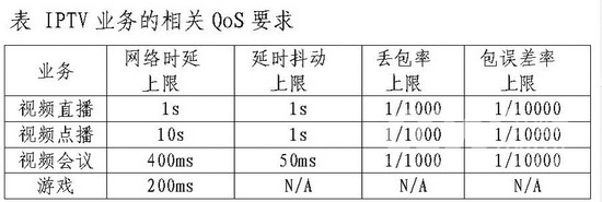 IPTV業(yè)務(wù)對時延也有一定的要求(參見附表):