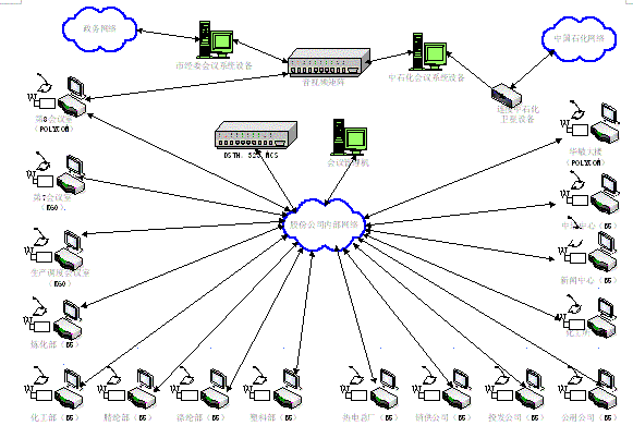 近年來,上海石化陸續(xù)建立了一些視頻會議室,例如,作為中石化集團(tuán)公司視頻會議系統(tǒng)的分會場之一,可以通過衛(wèi)星線路參與中石化總部召開的電視電話會議;位于上海華敏辦公樓的視頻會議室,可以通過電信專線實(shí)現(xiàn)與金山本部、北京總部的三地視頻會議;還有一些小型視頻會議室,可以實(shí)現(xiàn)與中石化兄弟單位的視頻連接。但這些系統(tǒng)不僅未能有機(jī)地整合起來,而且視頻會議室的范圍和規(guī)模無法滿足公司各部門的應(yīng)用需求。