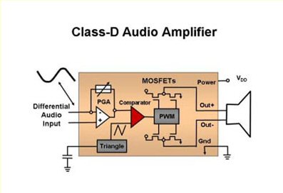 在音頻解決方案中進(jìn)行折衷與音頻處理性能、音頻輸出功率、熱耗散和整體的功耗有關(guān)。傳統(tǒng)的音頻方案由兩到三個(gè)受AB類音頻功率放大器驅(qū)動(dòng)的揚(yáng)聲器構(gòu)成。然而,相對(duì)于它的整個(gè)音頻輸出而言,AB類放大器的工作固有地生成大量的熱。這些積聚起來(lái)的高溫因?yàn)樾枰蟮纳崞瑏?lái)散發(fā)熱量,所以,在大多數(shù)薄形狀因子的平面電視中禁止采用AB類放大器。為了解決這個(gè)問(wèn)題,業(yè)界采用了D類放大器技術(shù)(圖3)。目前,輸出場(chǎng)效應(yīng)三極管(FET)可以在截止區(qū)與飽和區(qū)之間切換,從而提供比AB類放大器更高的效率。現(xiàn)有的音頻解決方案容許你完全利用數(shù)字信號(hào)路徑。這不僅僅最大化音頻效率,而且,它們也提供有效的處理和大于110dB的信噪比(SNR)。